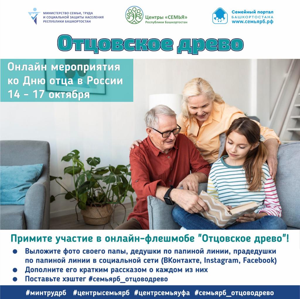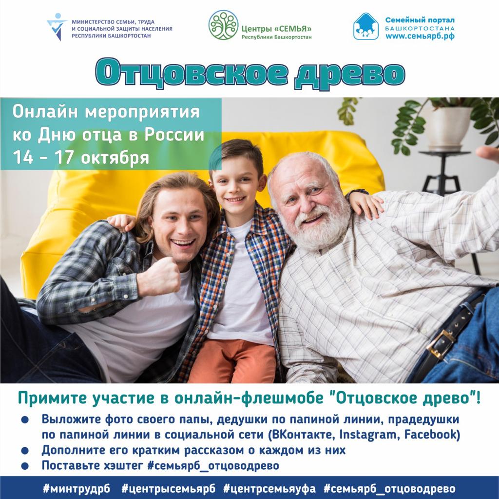 В честь такого замечательного праздника Министерство семьи труда и социальной защиты населения РБ и Центры «Семья» присоединяются ко всероссийским онлайн акциям и активностям, которые пройдут с 14 по 17 октября!