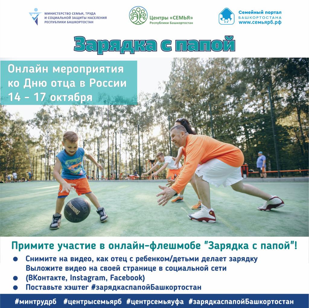 Приглашаем вас, дорогие активные семьи, принять участие в онлайн-флешмобе «Зарядка с папой»!